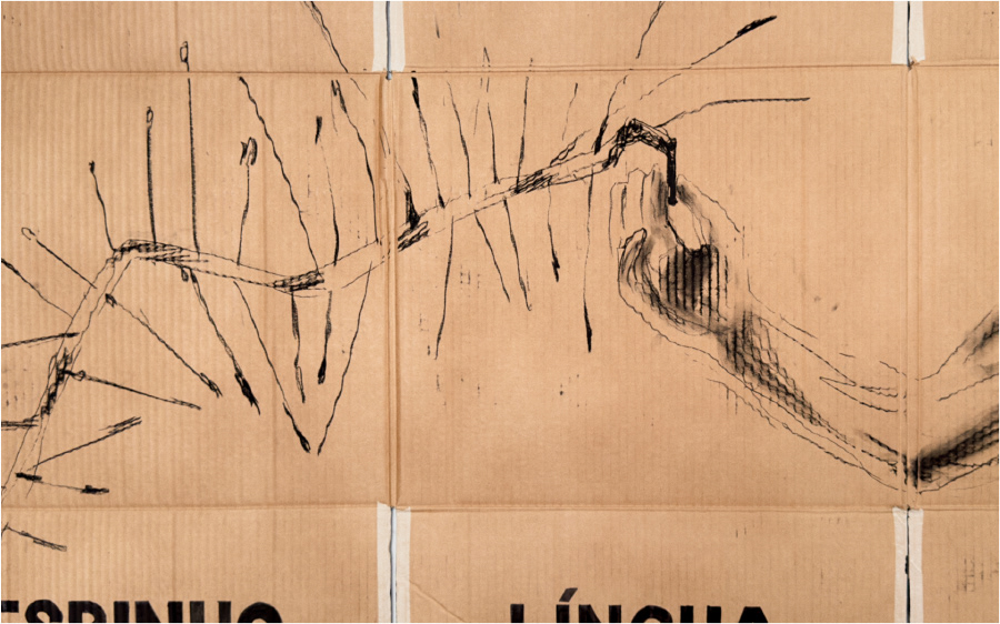 Papelão, carvão, tinta preta